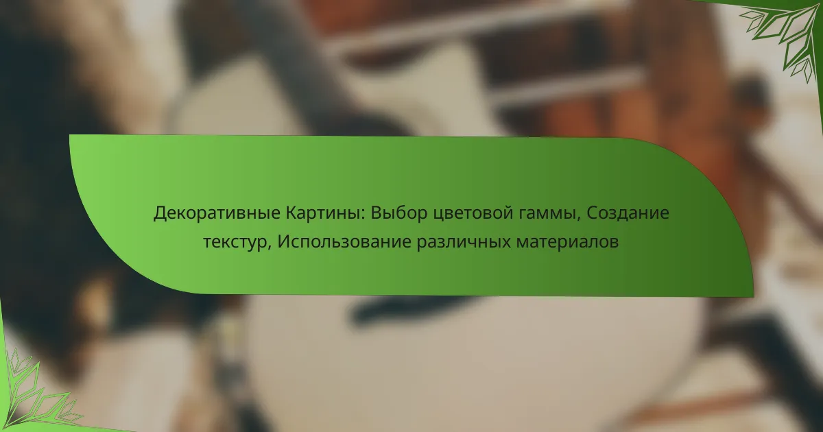 Для создания декоративных картин можно использовать разнообразные материалы, включая акриловые краски, масло, текстиль и даже природные элементы. Выбор материала зависит от желаемого стиля, техники и текстуры, которые вы хотите достичь в своей работе.