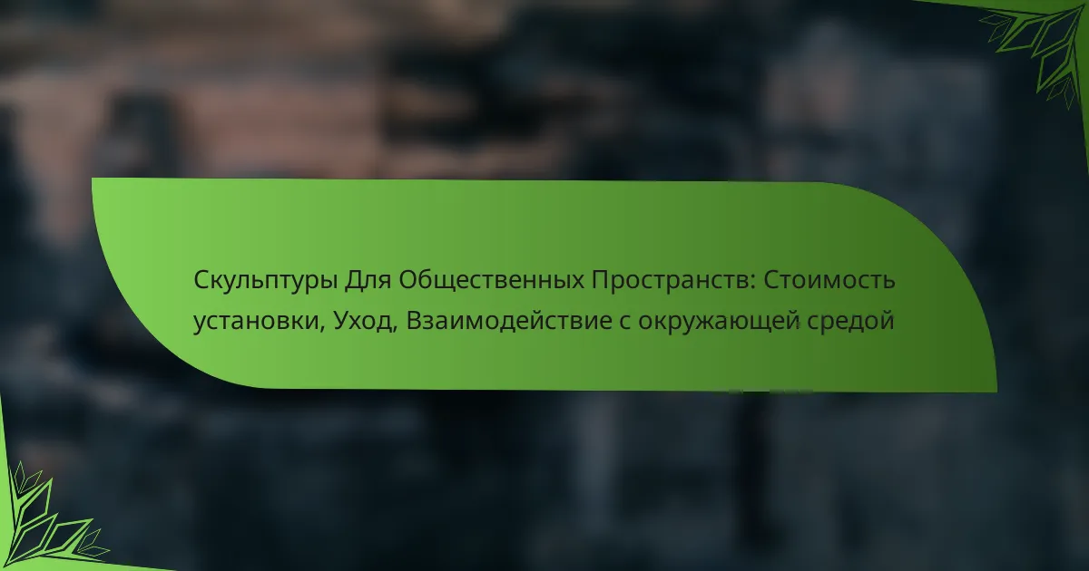 Скульптуры для общественных пространств представляют собой уникальные художественные объекты, которые обогащают окружающую среду и создают взаимодействие с посетителями. Их установка требует значительных финансовых вложений, которые зависят от различных факторов, таких как размер и материал. Кроме того, регулярный уход за этими произведениями искусства необходим для их сохранения и защиты от внешних воздействий.