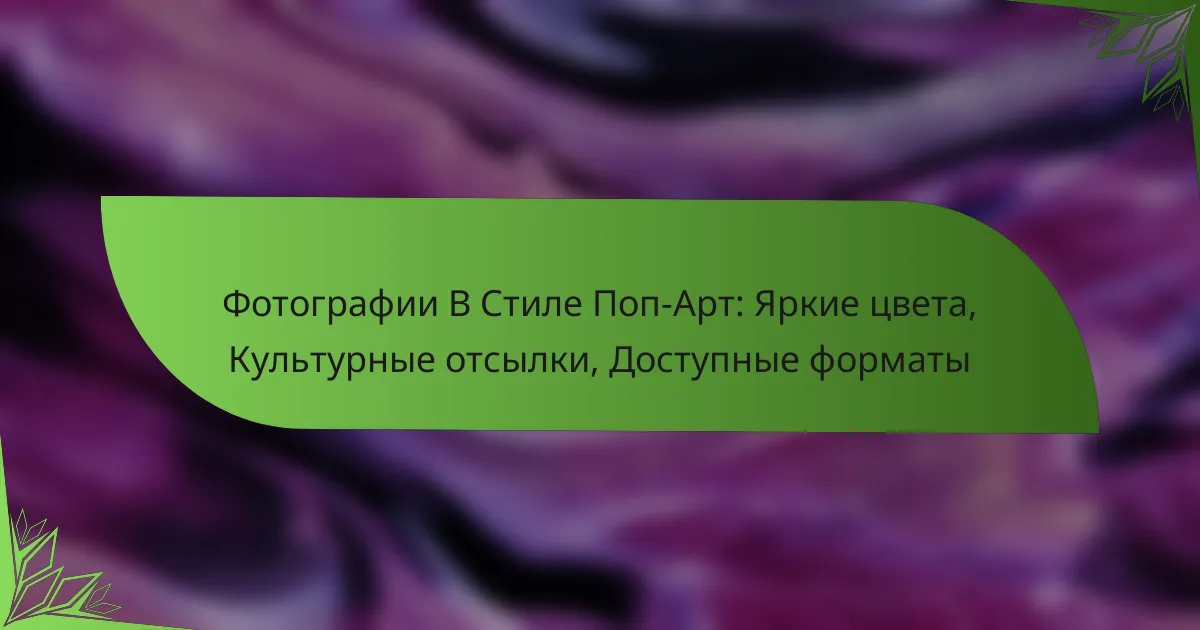 Поп-арт фотография – это жанр, который сочетает элементы фотографии и поп-арт движения, акцентируя внимание на ярких цветах и графических формах. Этот стиль часто использует повседневные объекты и образы, превращая их в искусство, которое легко воспринимается широкой аудиторией.