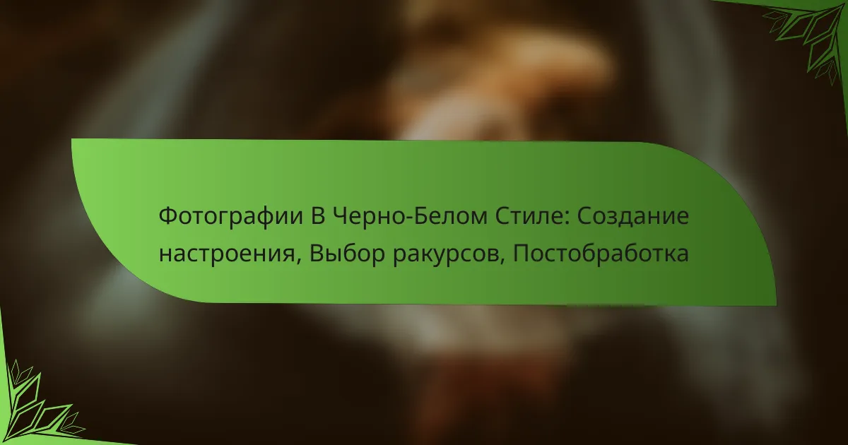 Черно-белая фотография обладает уникальной способностью создавать настроение, акцентируя внимание на форме, текстуре и контрасте. Выбор правильных ракурсов и тщательная постобработка играют ключевую роль в передаче эмоций и создании глубины изображения. Отсутствие цвета позволяет зрителю сосредоточиться на эмоциональных аспектах, делая каждую деталь значимой.