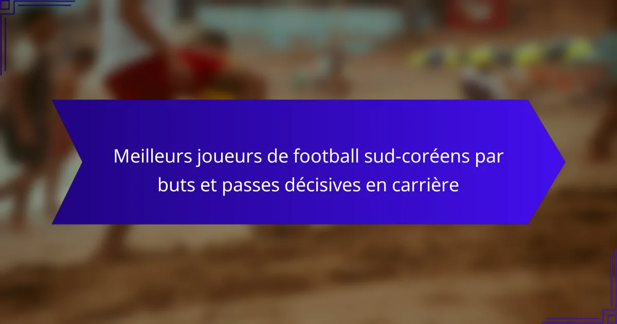 Les joueurs sud-coréens ayant les meilleures statistiques de carrière incluent généralement ceux qui excellent dans le scoring, les passes décisives et la longévité dans les ligues professionnelles. Des joueurs notables dominent souvent ces catégories, montrant leurs compétences tant sur le plan national qu’international.